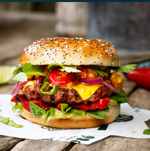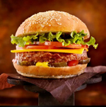 13,90€Hamburguesa de ternera a la parrilla, Lechuga, Cebolla, Tomate, Lonches de Queso, Salsa Especial, Pepinillos.