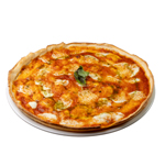 Mediana (28 cm) 9,90€ Grande (36 cm) 12,90€Tomate, mozzarella, bacon, Pepperoni (halal), Champiñones, Gambas, orégano