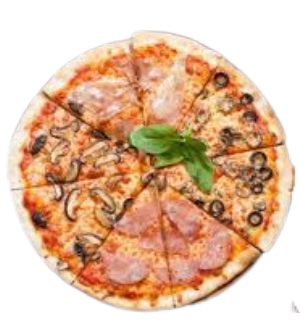 Mediana (28 cm) 9,90€ Grande (36 cm) 13,90€Tomate, mozzarella, Jamón de pavo, champiñones, orégano.