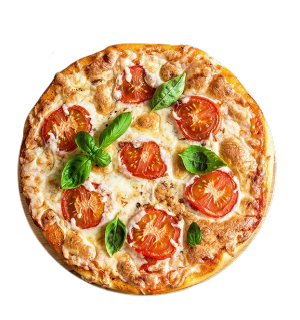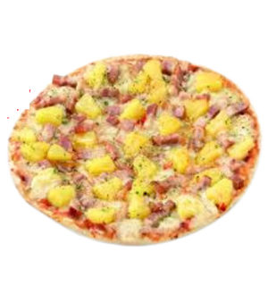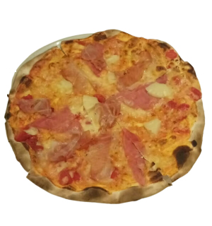 Mediana (28 cm) 9,90€ Grande (36 cm) 14,90€Tomate, mozzarella, Jamón de pavo, tomate Cherry, piña, albahaca.