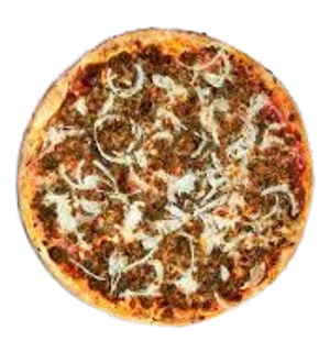 Mediana (28 cm) 9,90€ Grande (36 cm) 13,90€Tomate, mozzarella, carne picada, oliva, Tomate Natural, Jalapeños,Pimiento Rojo y Verde, cebolla, oliva negra, orégano