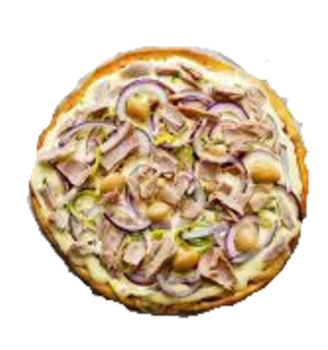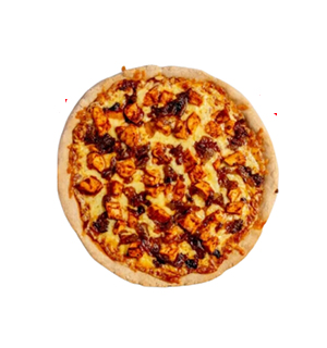 Mediana (28 cm) 10,50€ Grande (36 cm) 14,90€Salsa Barbacoa, mozzarella, pollo, cebolla, Oliva Negra, Orégano
