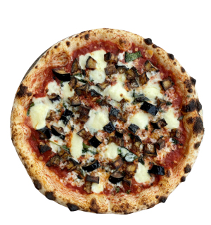 Mediana (28 cm) 10,90€ Grande (36 cm) 13,90€Tomate, mozzarella, berenjena, parmesano, Balsámico.